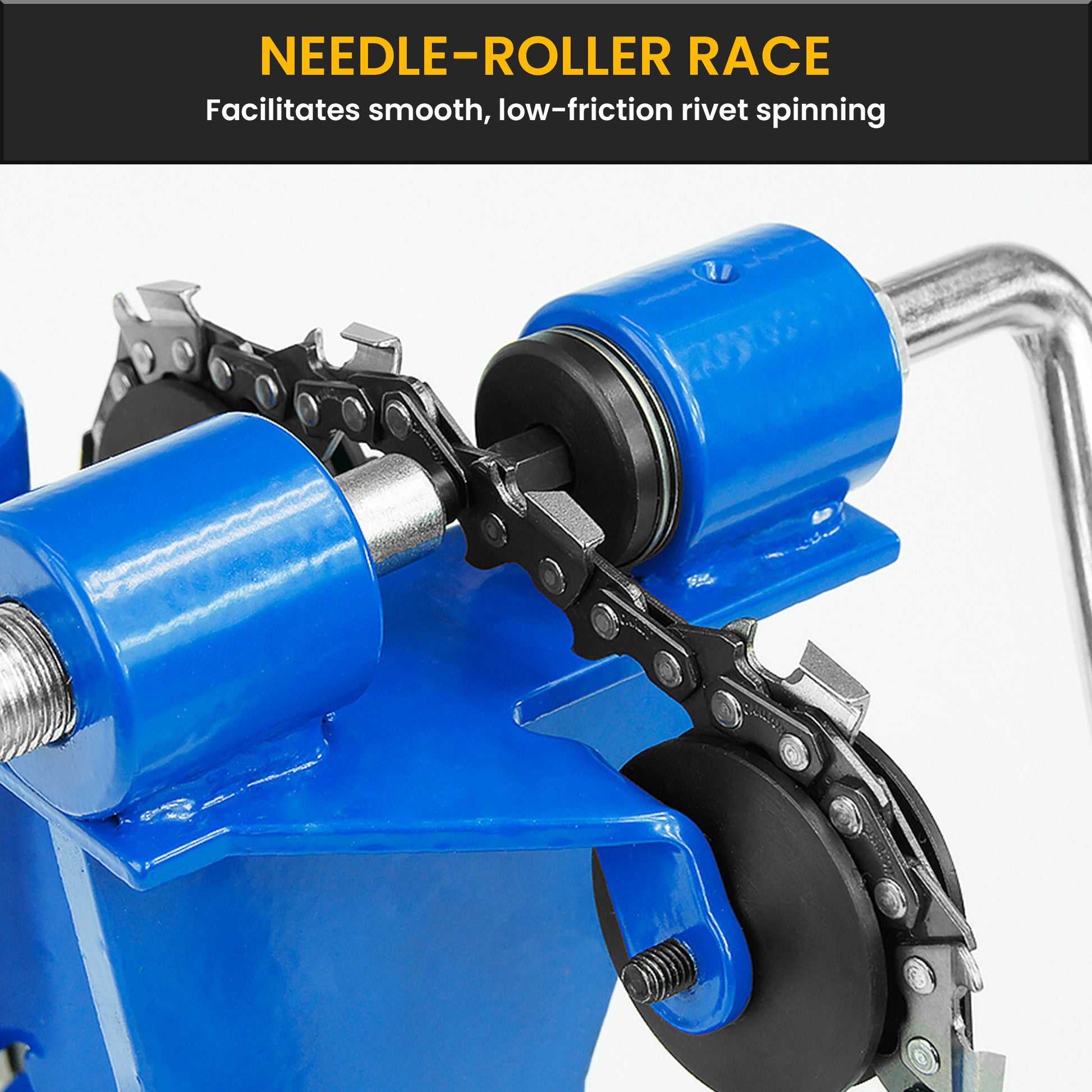 With the long thrust lever, you can quickly and easily punch out rivets (even from the toughest chains) and re-install them quickly, giving you very low downtime to get your saw up and running like new!