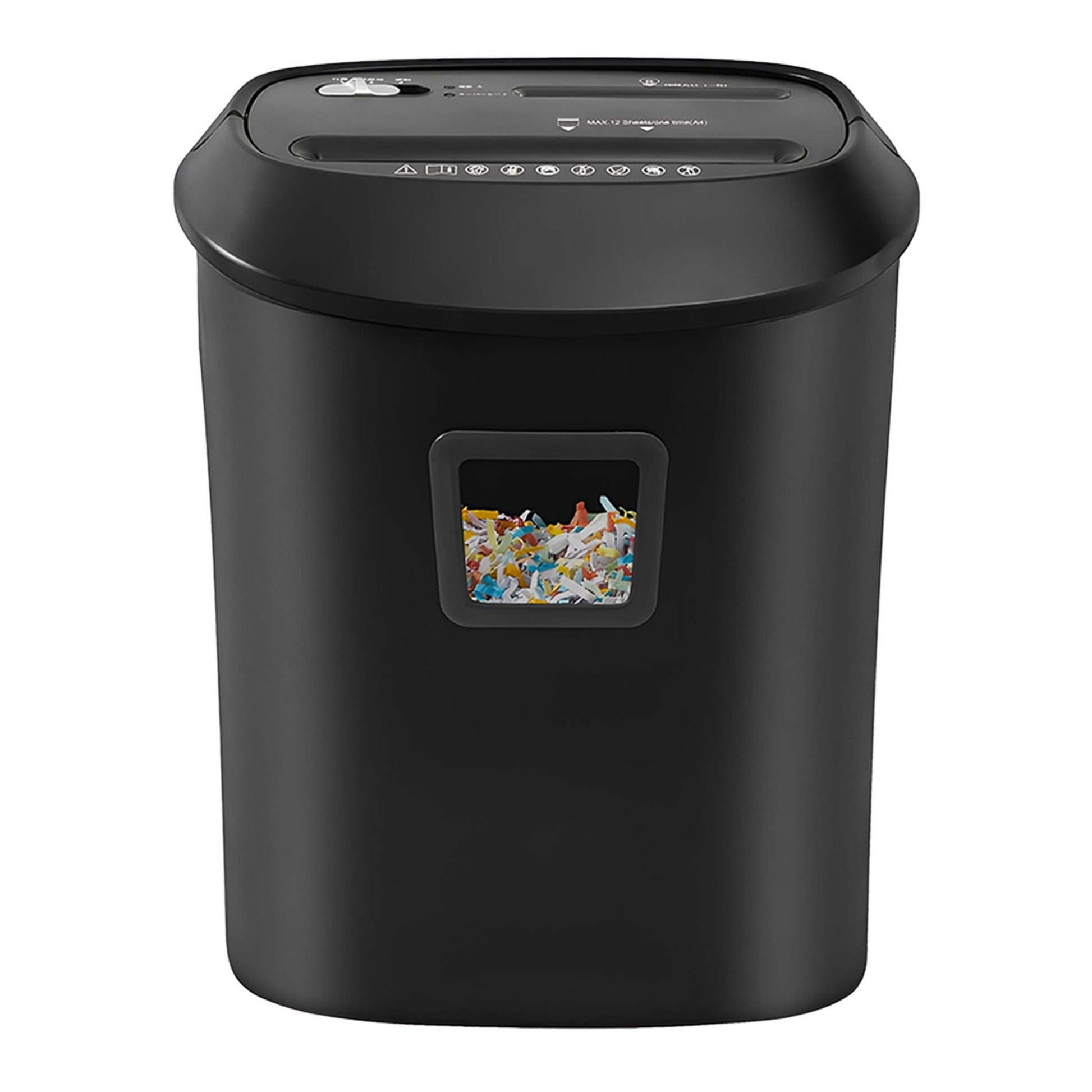Tame the paper chaos with the powerful paper shredder by Centurion. It crosscuts up to 12 sheets at once, slicing through paper, credit cards and discs with ease. Perfect for home or office use, it has built-in overheat protection and a handy LED indicator for peace of mind.