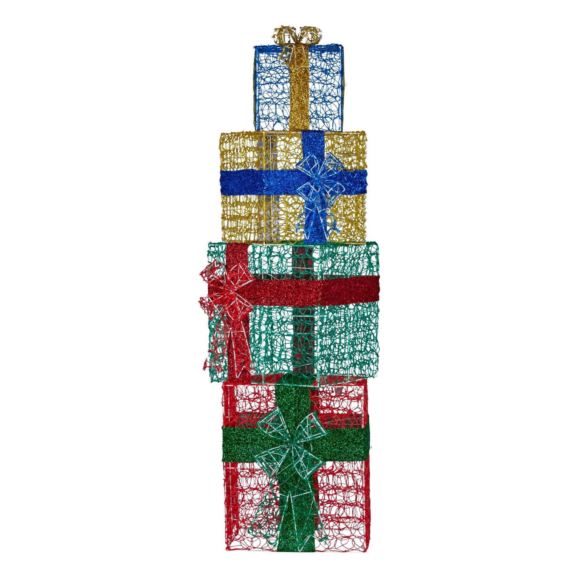 Christabelle 190cm 4-Piece Gift Stack Box Christmas Decoration Bows LED Lights Xmas Display