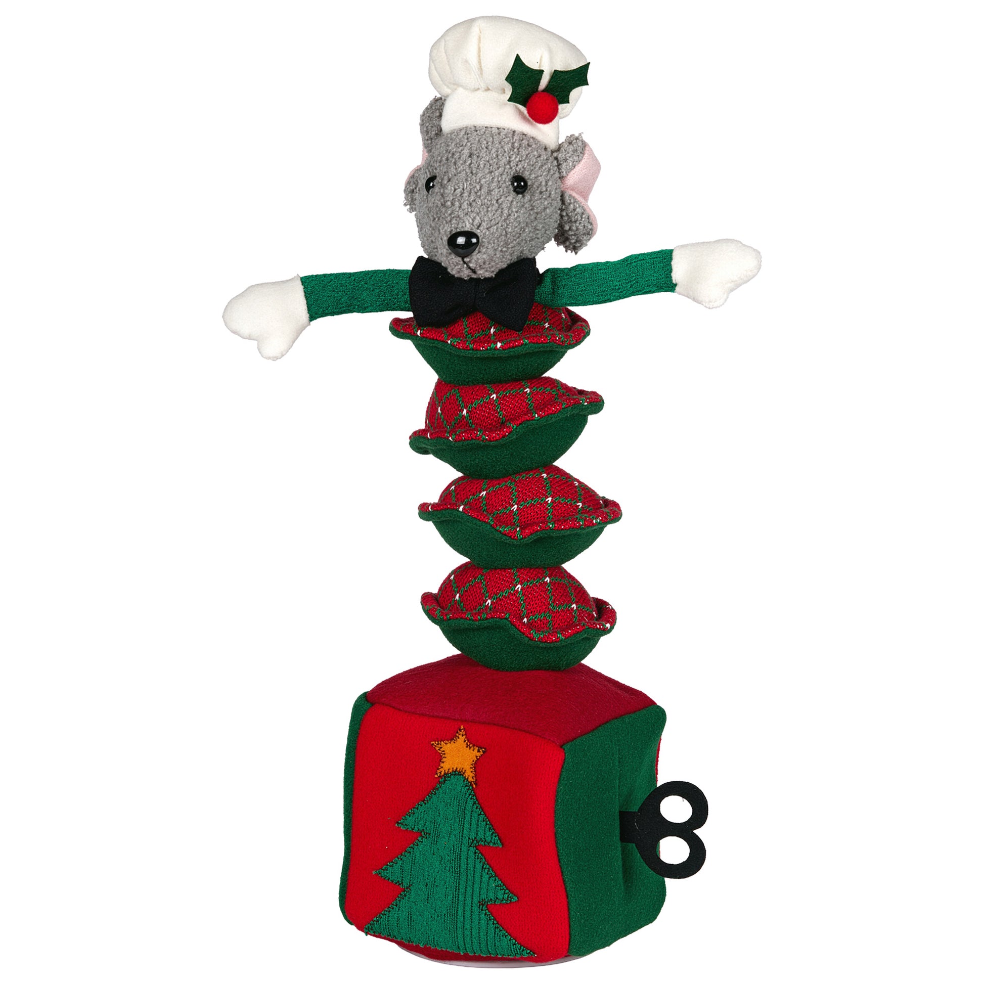 Turn up the festive fun with this animated Christmas mouse! Balancing on a stack of mince pies, it dances and sings a joyful holiday version of You Make Me Wanna Shout. Battery-operated and full of personality, its the perfect playful addition to your Christmas decorations or gift list.
