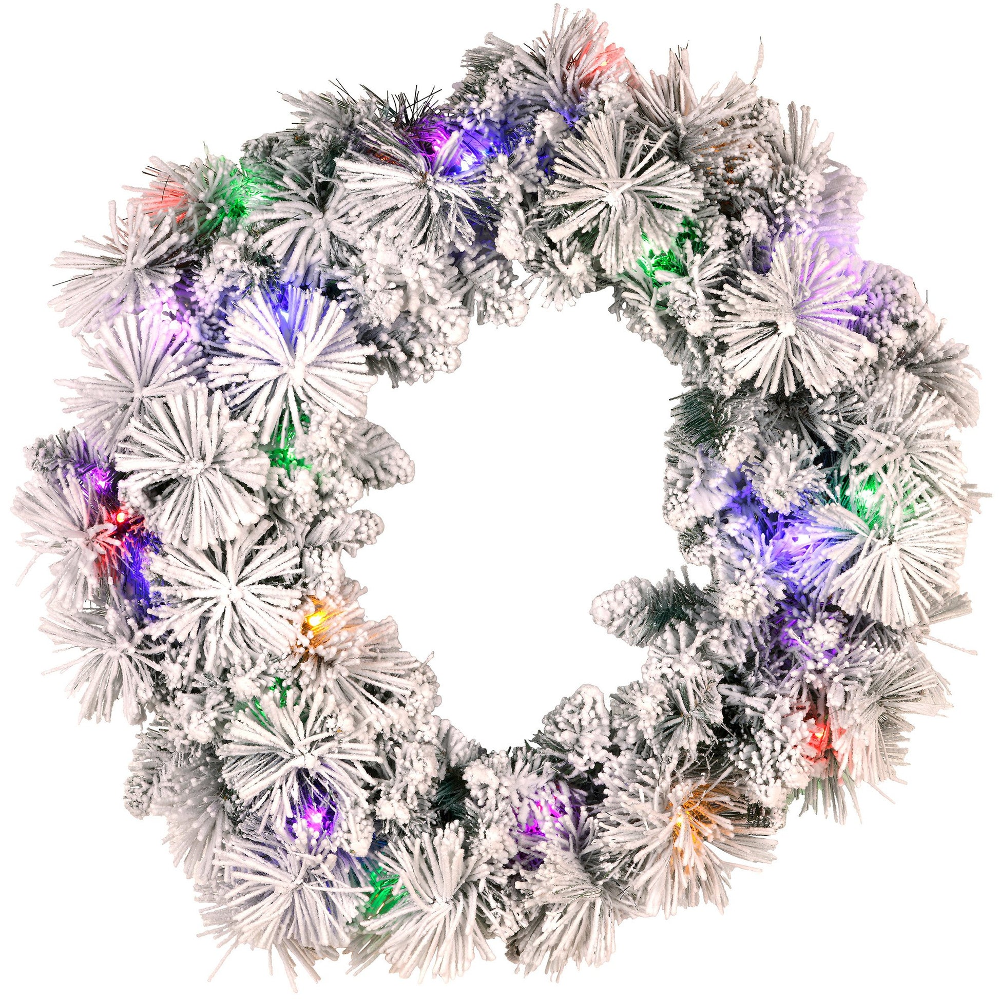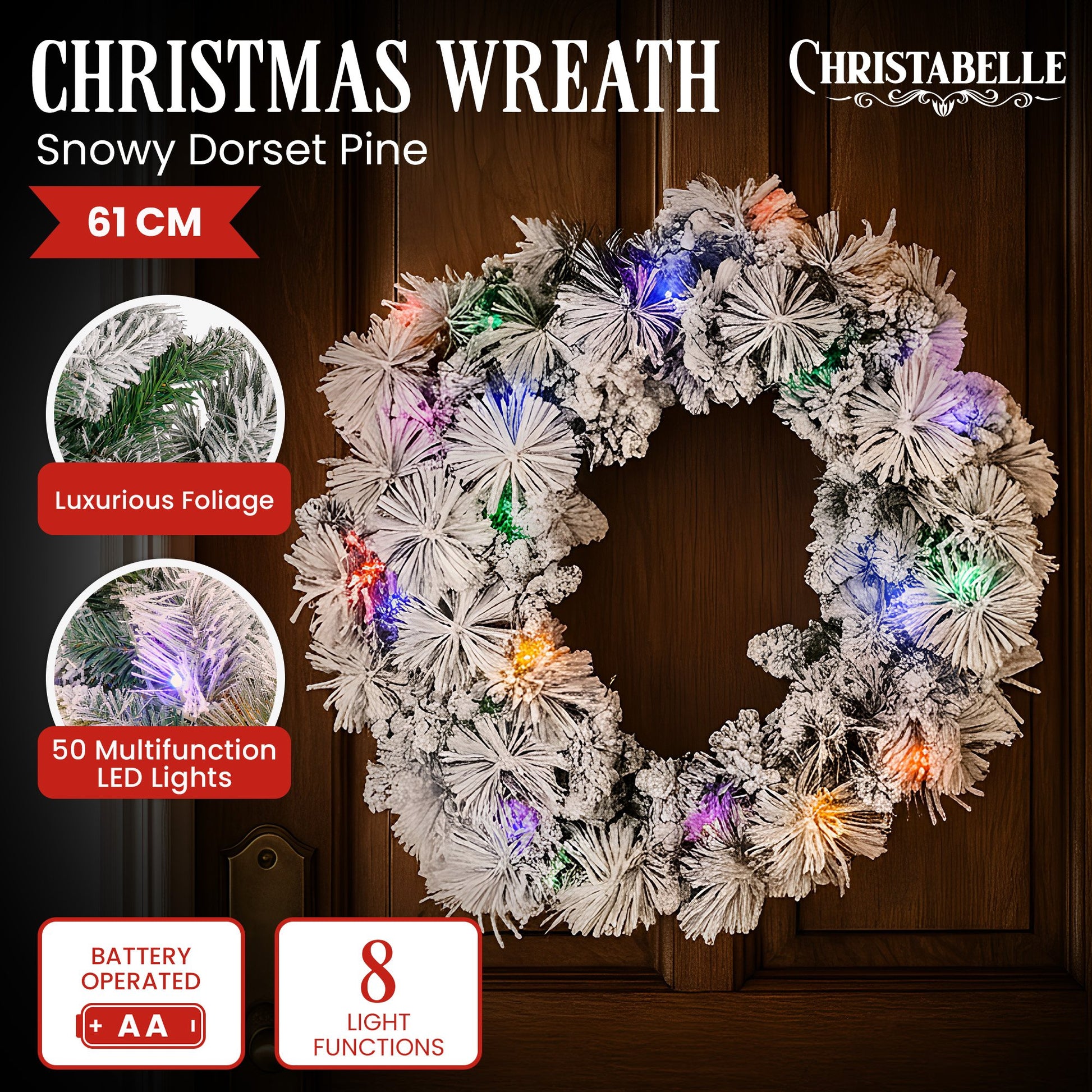 Christabelle 61cm Christmas Wreath Snowy Dorset Pine with Multi-Function LED Lights Tree Door Decoration Ornament