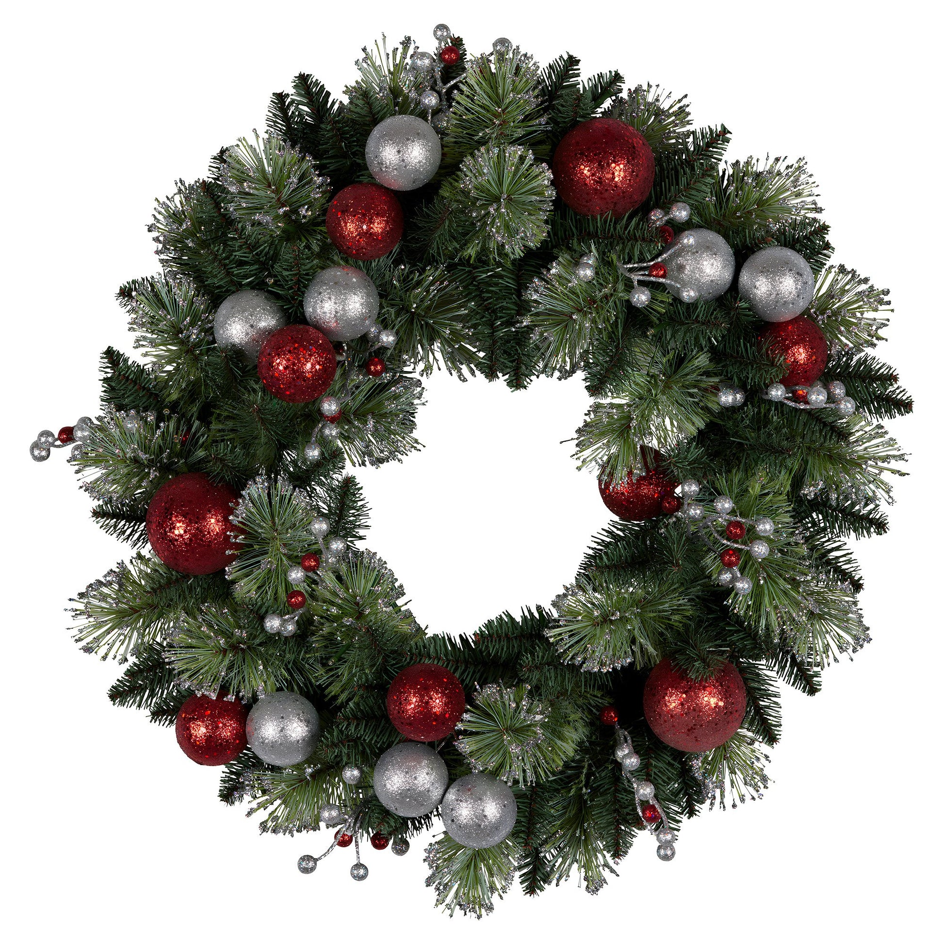 Christabelle Stunning 61cm Christmas Wreath with LED Lights Baubles Berries Red Silver Front Door Decoration