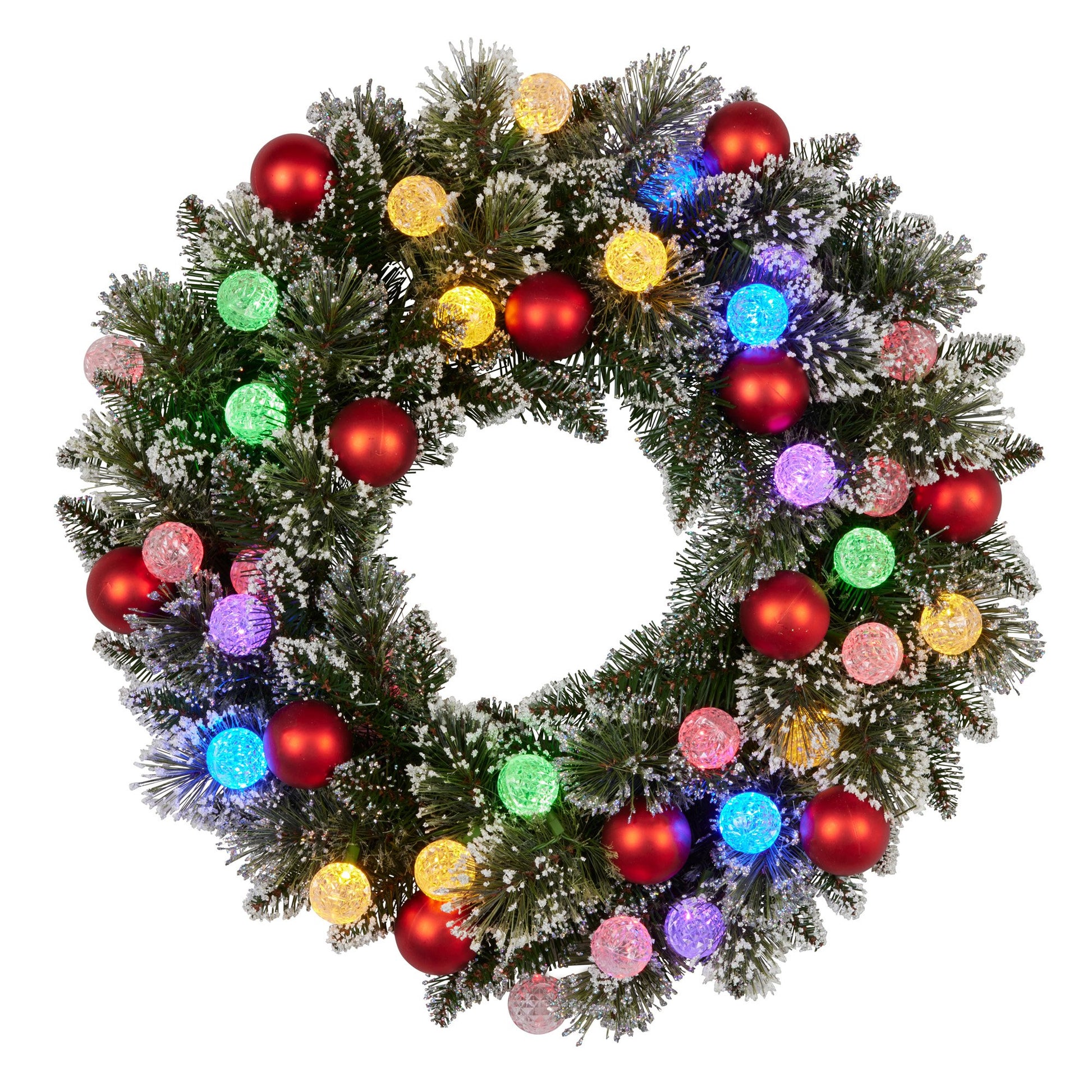 Christabelle 61cm Christmas Wreath Snowy Bristle with LED Lights Multicolour Front Door Decoration