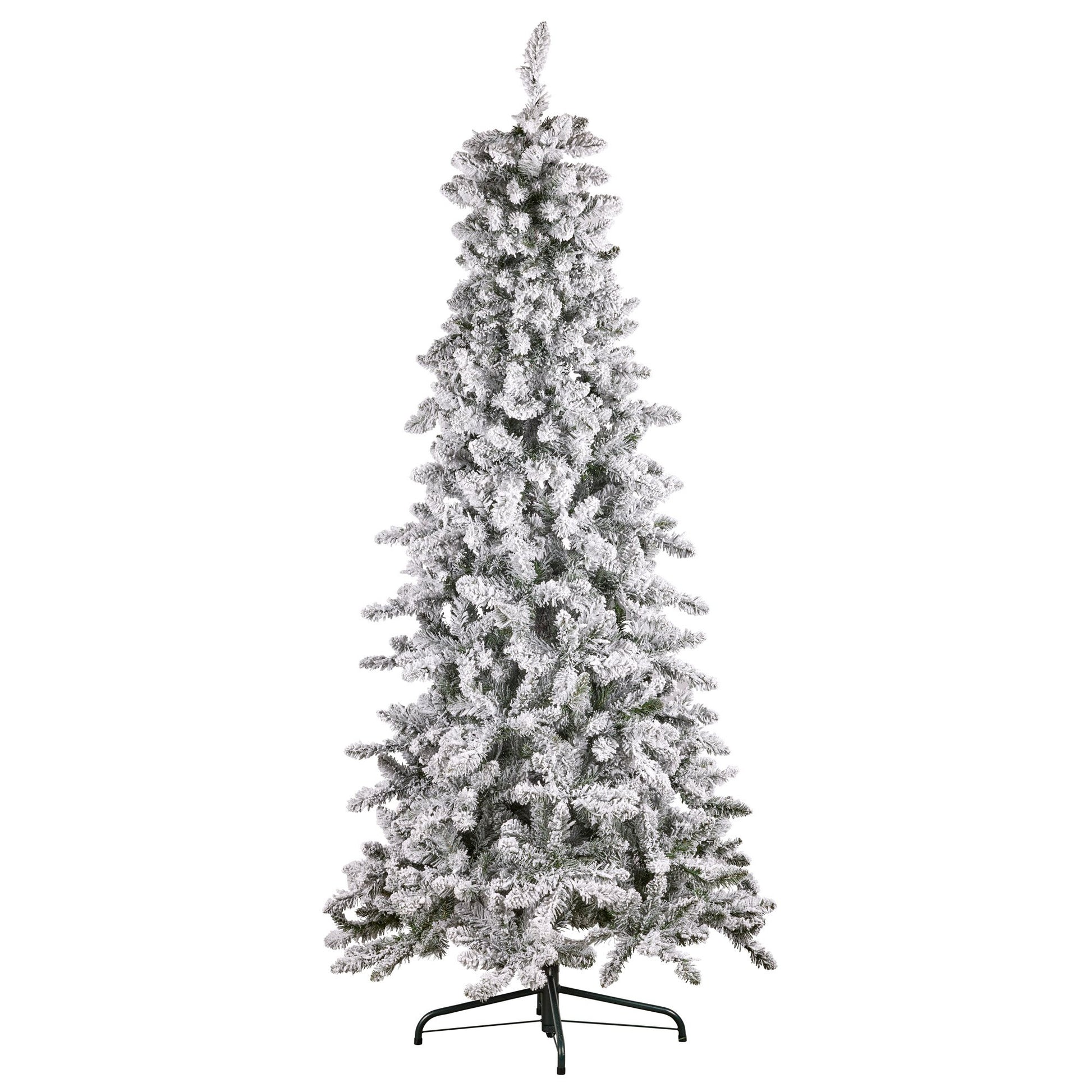 With a slender profile measuring just 61cm wide, this tree is perfect if youd like a space-saving option without compromising on the festive spirit. Its slim design allows you to place it in tight corners, small living rooms, or even as an elegant addition to larger spaces. This 7.5 foot tree boasts a beautiful flocked, snowy finish and is covered in warm white LED lights to save you time during your Christmas set up.