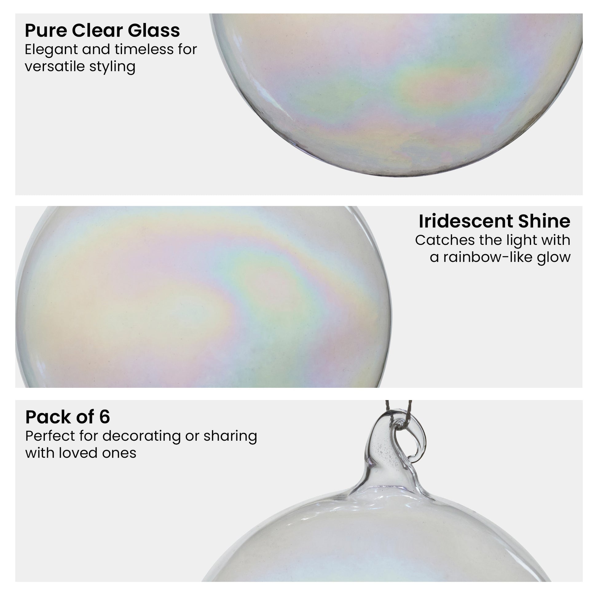 Christabelle Box of 6 Pure Clear Glass Baubles with Iridescent Shine