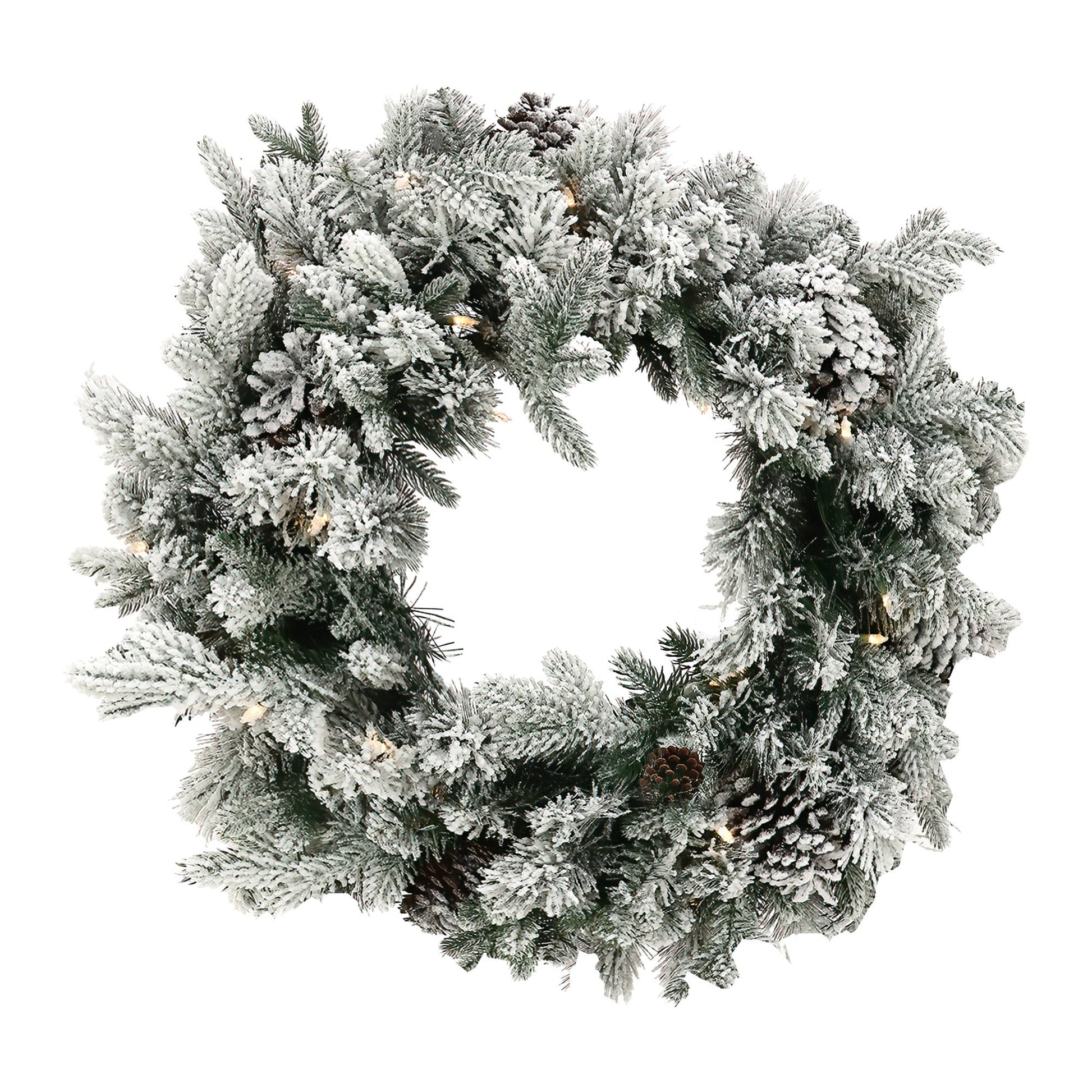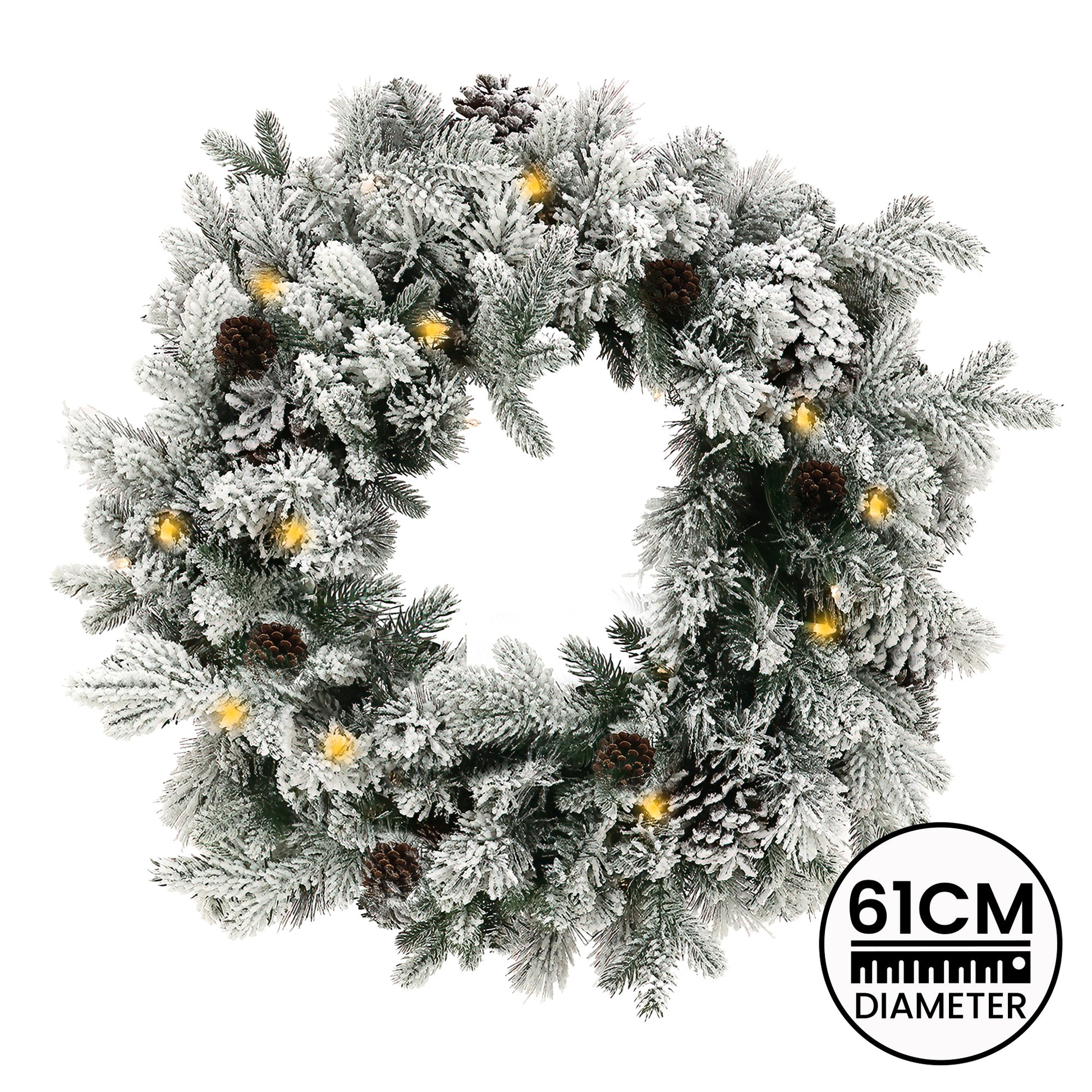 Christabelle 61cm Snowy Christmas Wreath with LED Lights Dorchester Pine Cones Front Door Decoration Ornament