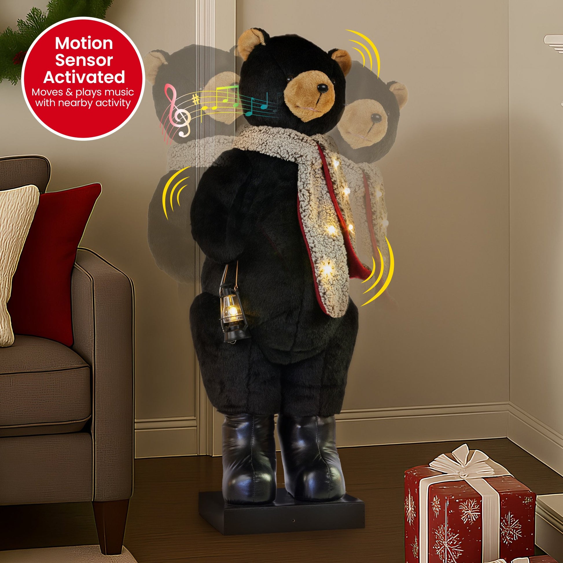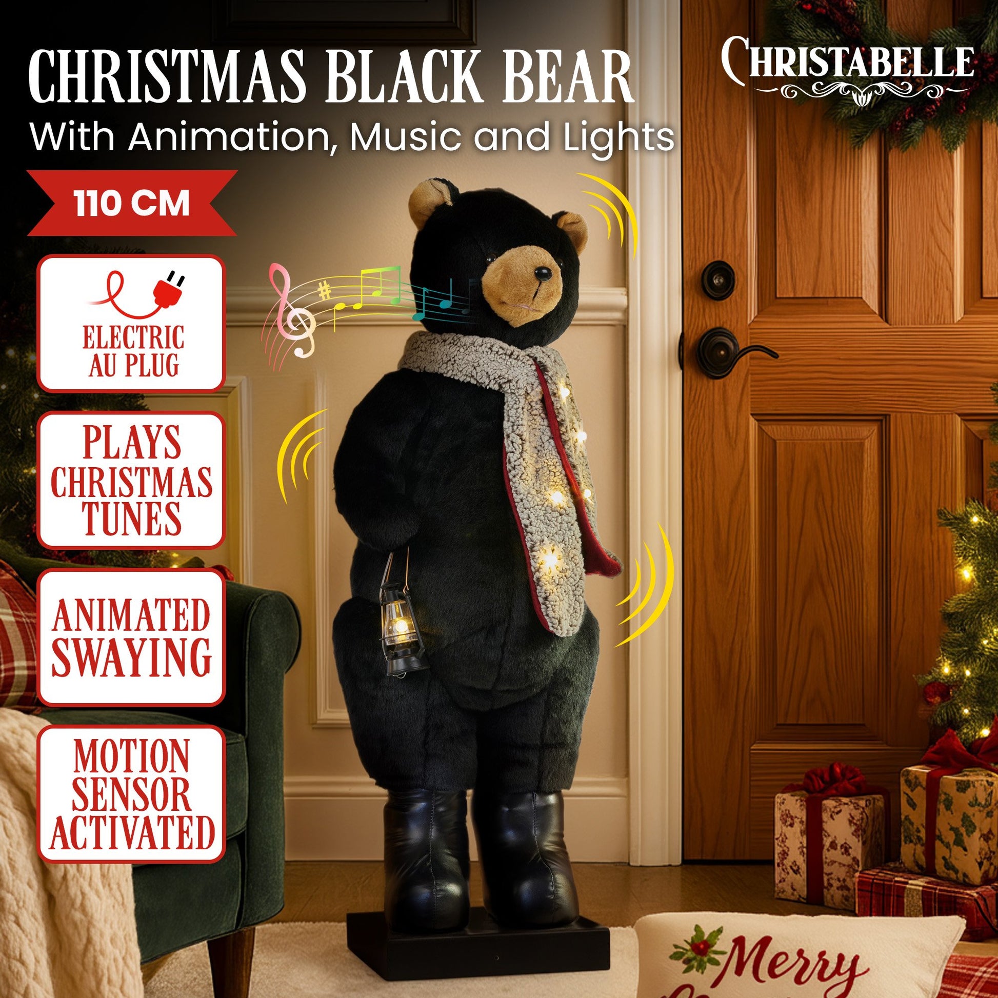 Christabelle Large 1.1m Musical Animated LED Black Christmas Bear Decoration Ornament