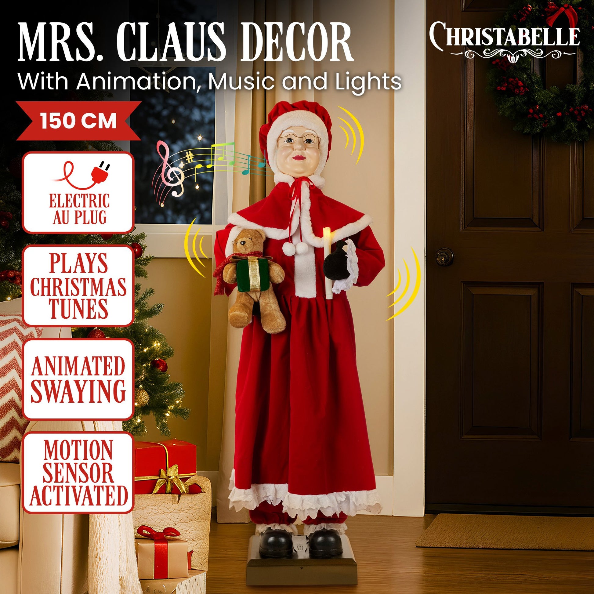 Christabelle Large 1.5m Musical Animated Mrs Claus Christmas Decoration with Candle Ornament