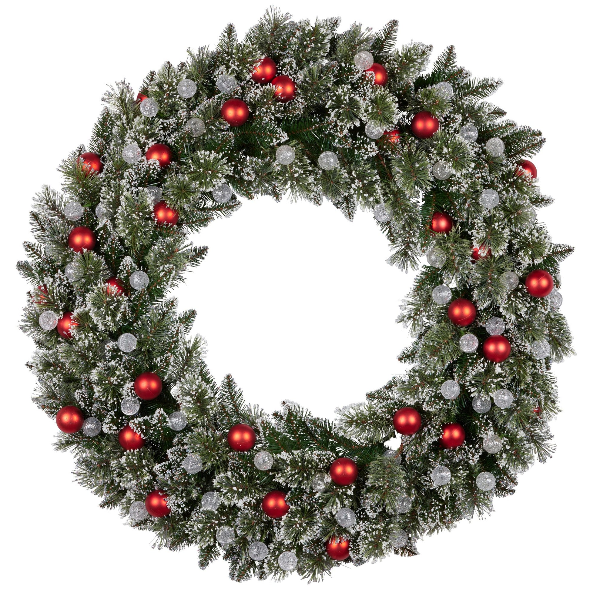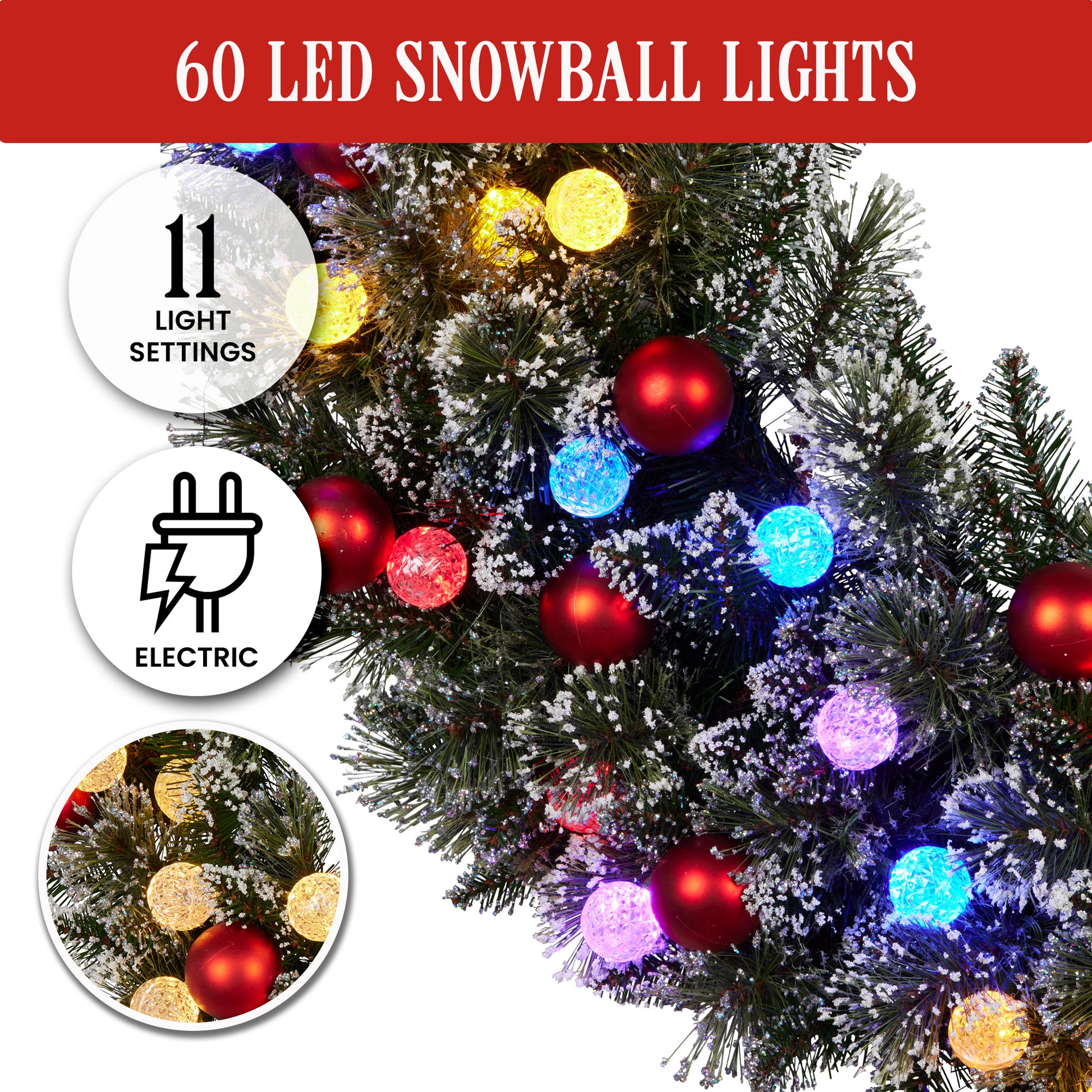 Add some holiday spirit to your walls with this charming Christmas wreath from our Snowy Bristle collection! At an impressive 122cm, this wreath display is a real showstopper, grabbing attention with its grand size and captivating presence. Its decked out with frosted snow bristle tips and adorned with bright red baubles, illuminated by LED snowball lights for that extra festive touch. With 11 light functions like colour, warm white, and different combinations, its sure to bring some holiday cheer to any festive setting!