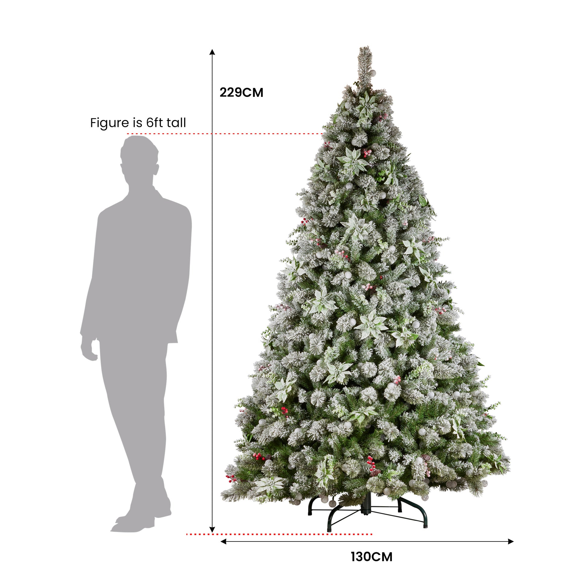 - Pre-decorated with berries, pine cones and poinsettia flowers