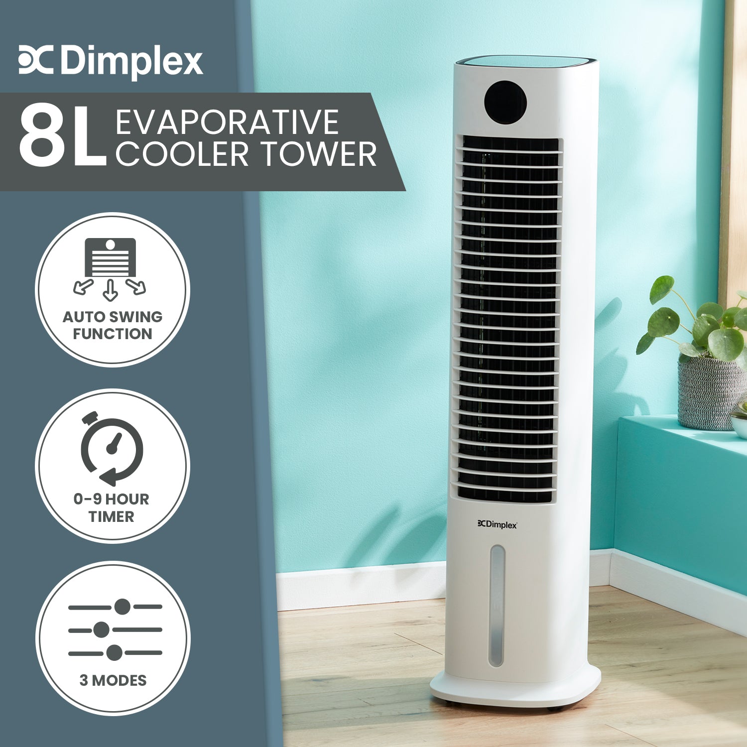Stay cool the healthier way with the Dimplex 8L Evaporative Cooler Tower. Cost-effective and healthy, this cooler uses a natural process involving motion and water evaporation to cool down the air.