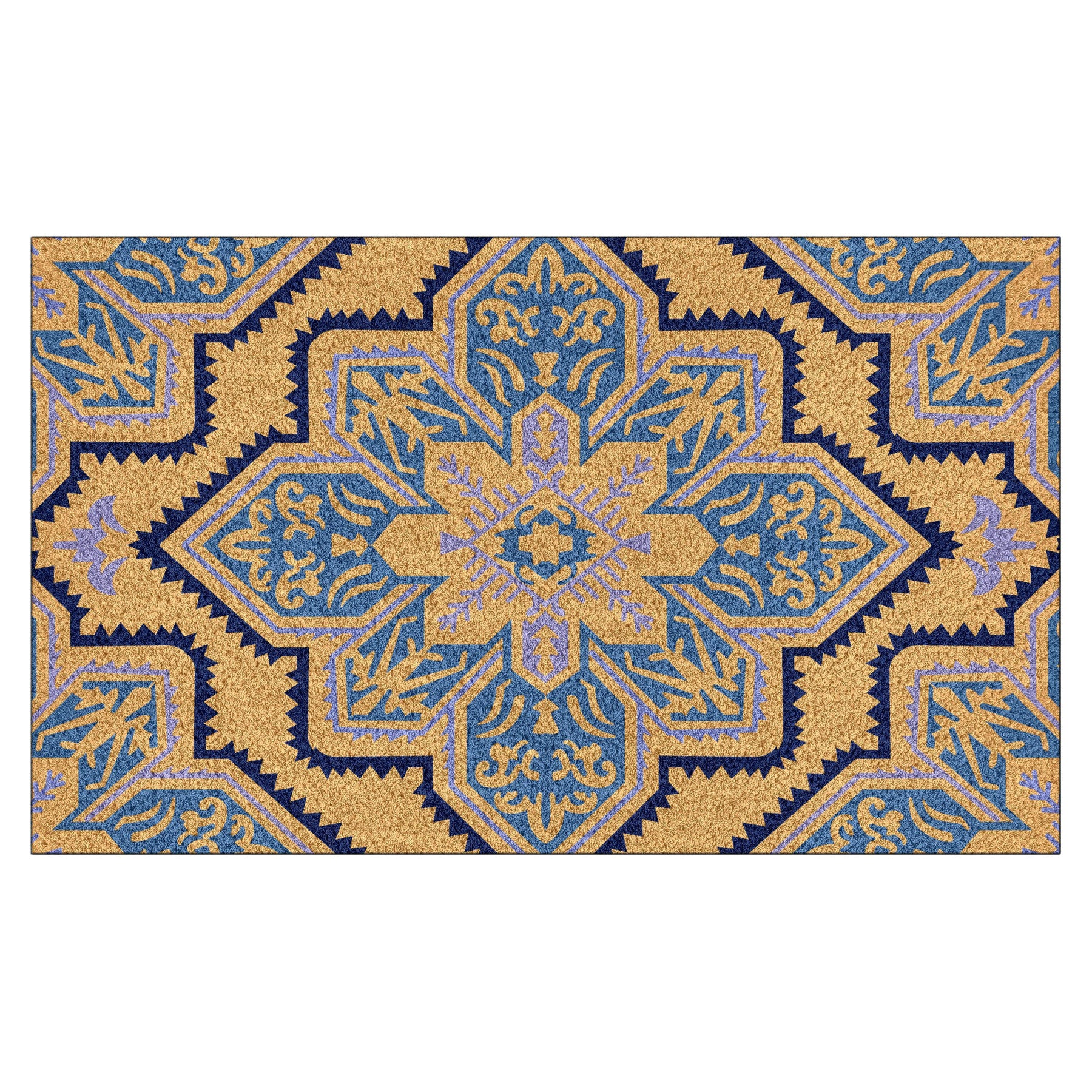 Door Mat Deluxe Coir Backed Blue Mosaic 45 x 75 cm Doormat
