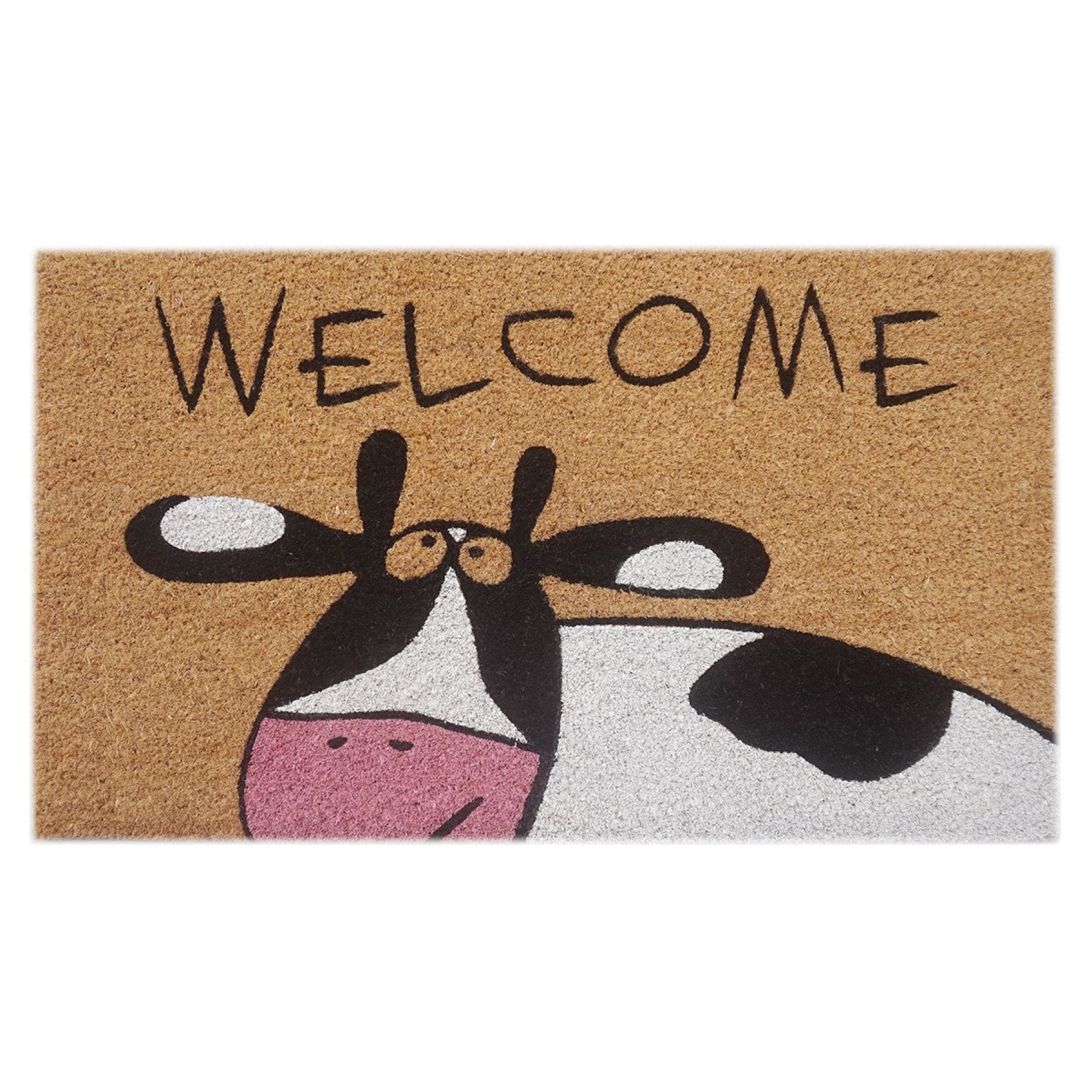 Door Mat Deluxe Coir Backed Cow Welcome 45 x 75 cm Doormat