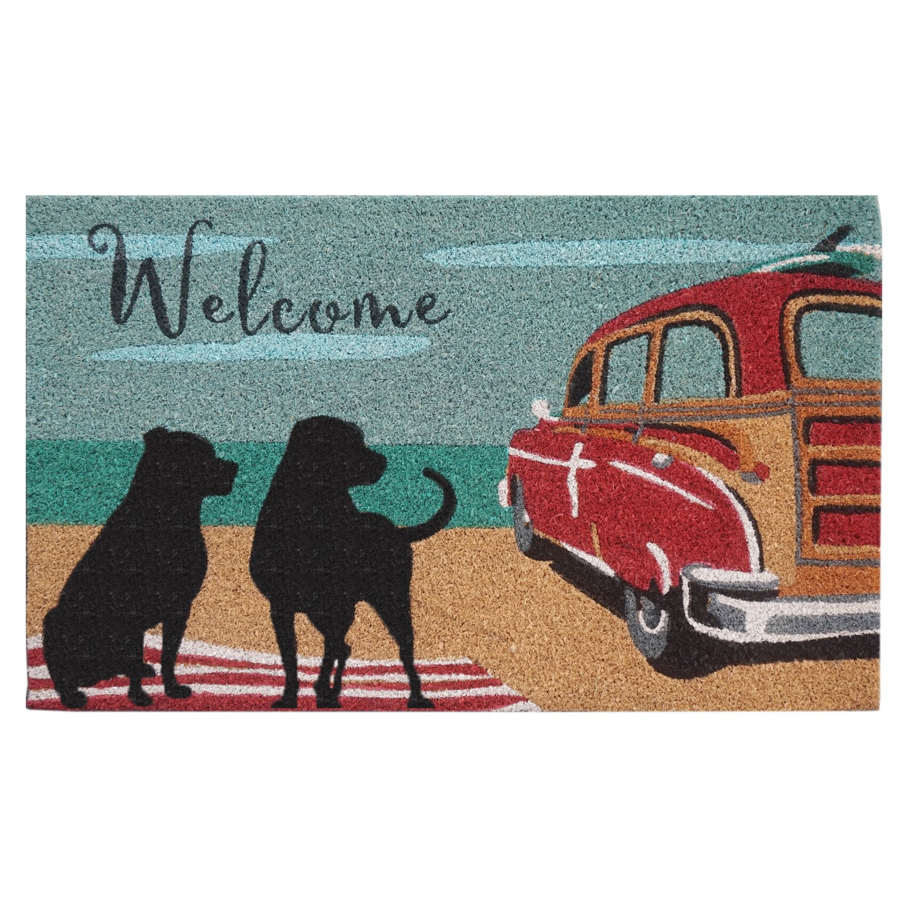 Door Mat Deluxe Coir Latex Dog Old Car Beach Coastal Surf 45 x 75 cm Doormat