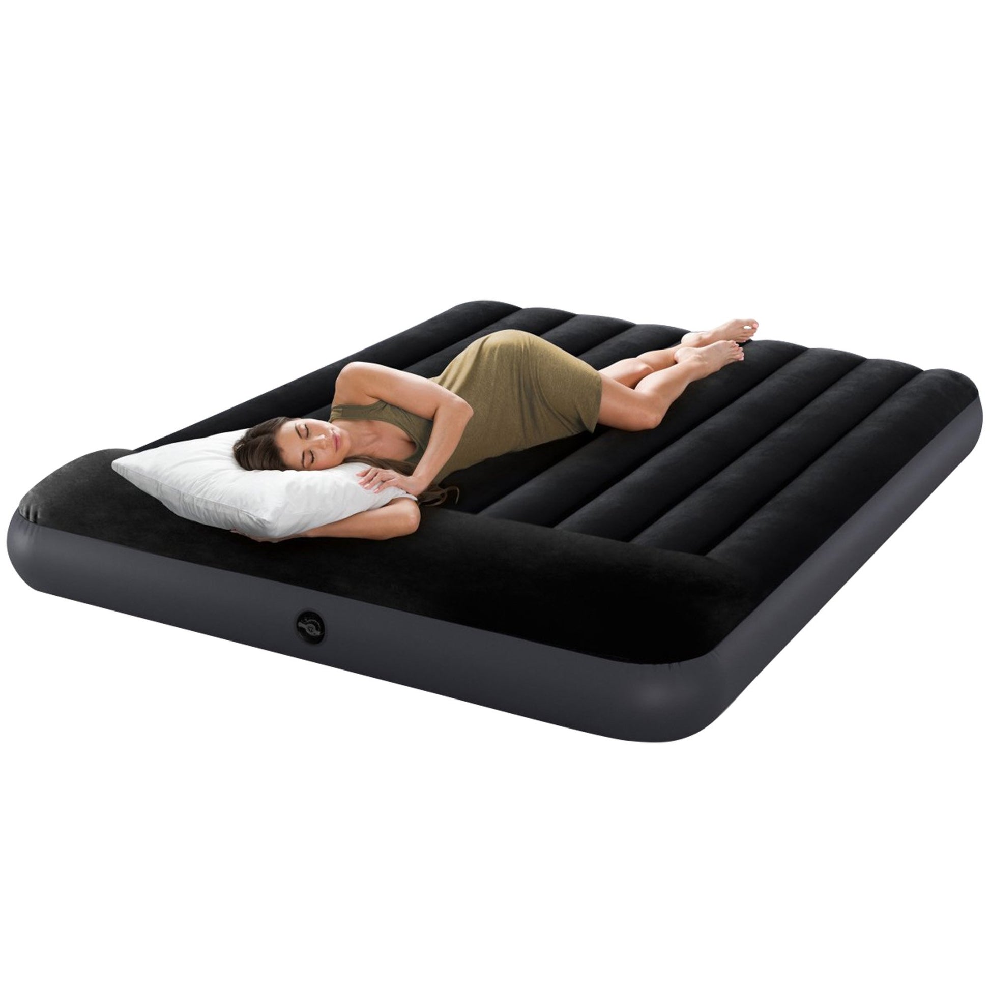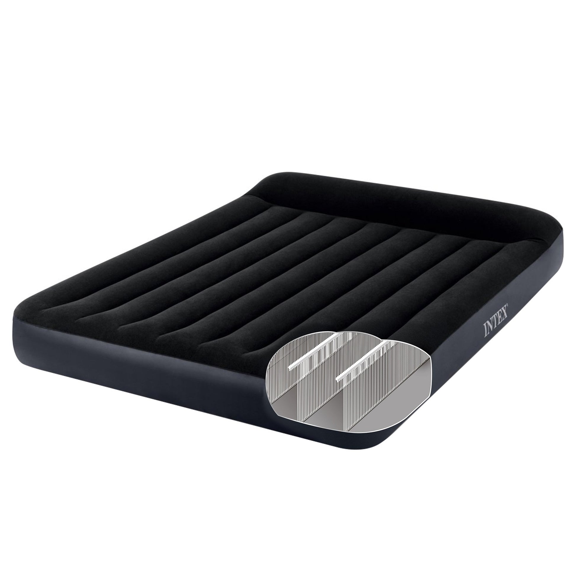 Intex Dura-Beam Classic Inflatable Queen Airbed Mattress with Pillow Rest Black