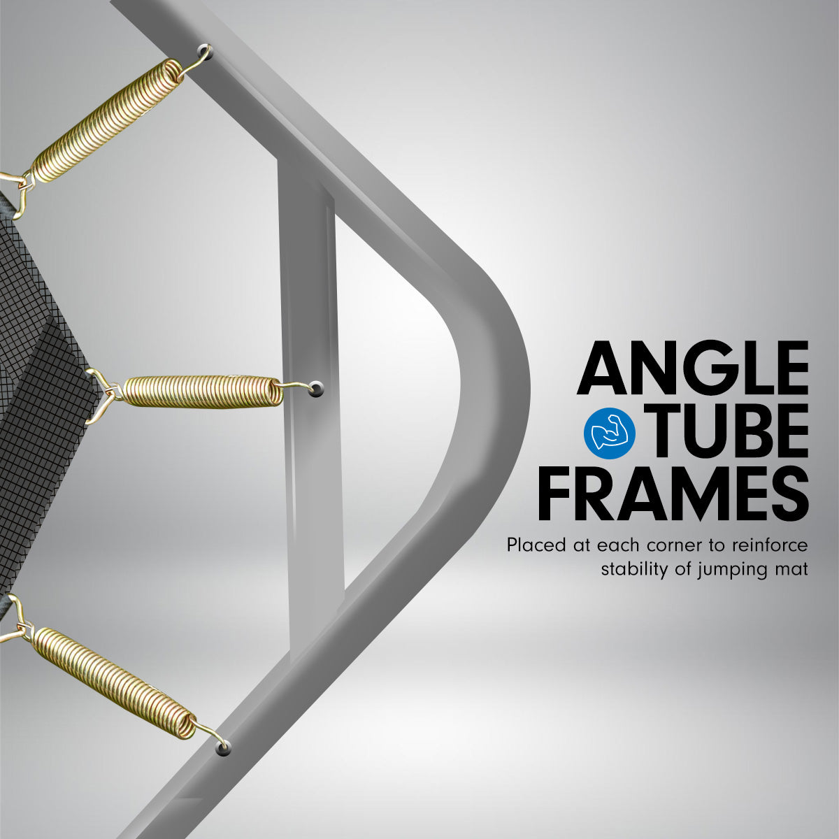 This trampoline features a spacious rectangular sized jumping surface and U-shaped linked legs for optimal support. Great for safe, family fun our trampolines are great way to get kids off those electronic devices and outside to burn off some of that energy.
