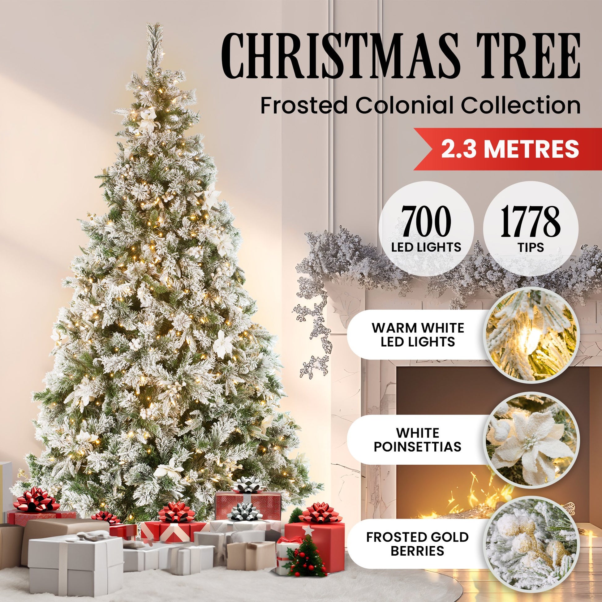 Illuminate your holiday setup with the Frosted Colonial Christmas Tree from National Tree Company, capturing the essence of the season. This 229cm tall tree showcases lifelike foliage and a snowy appearance, evoking a magical winter ambience. With 700 warm white LED lights adorning its branches, it emits a cosy and festive glow, making it the ideal centrepiece for your festive celebrations.