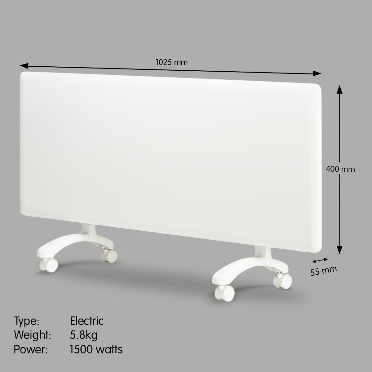 Nobo 1500W NTL4S15-FS40 Electric Panel Heater Thermostat & Castors
