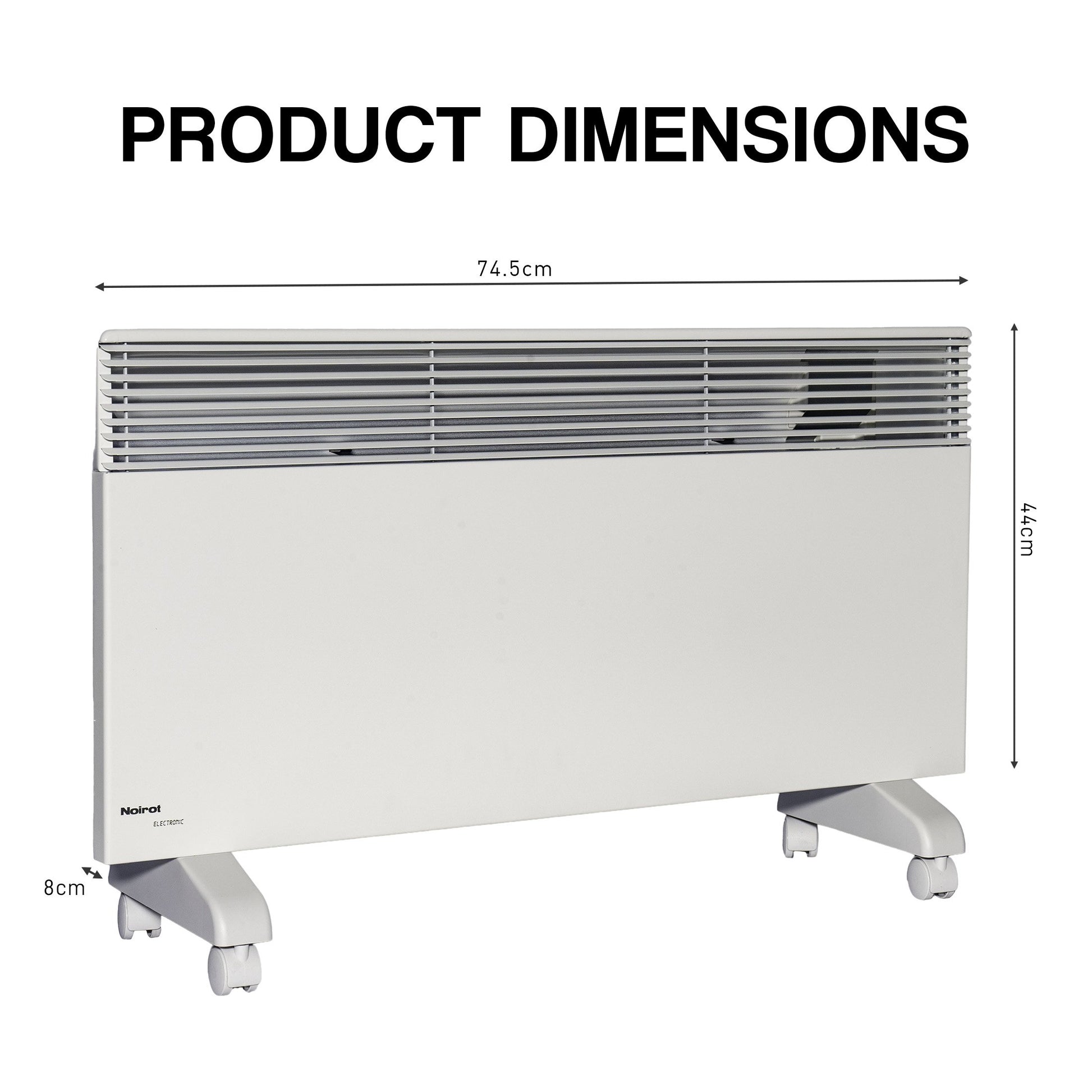 Enjoy safe, silent and reliable warmth all winter long with the Noirot 2000W Panel Heater. This slim, wall-mountable heater also includes castors, allowing for versatile use in every room of your home. The heater uses natural convection (instead of fans) to heat up your space, creating warmth without circulating allergens or dust. Stay cosy and breathe easy all winter long!