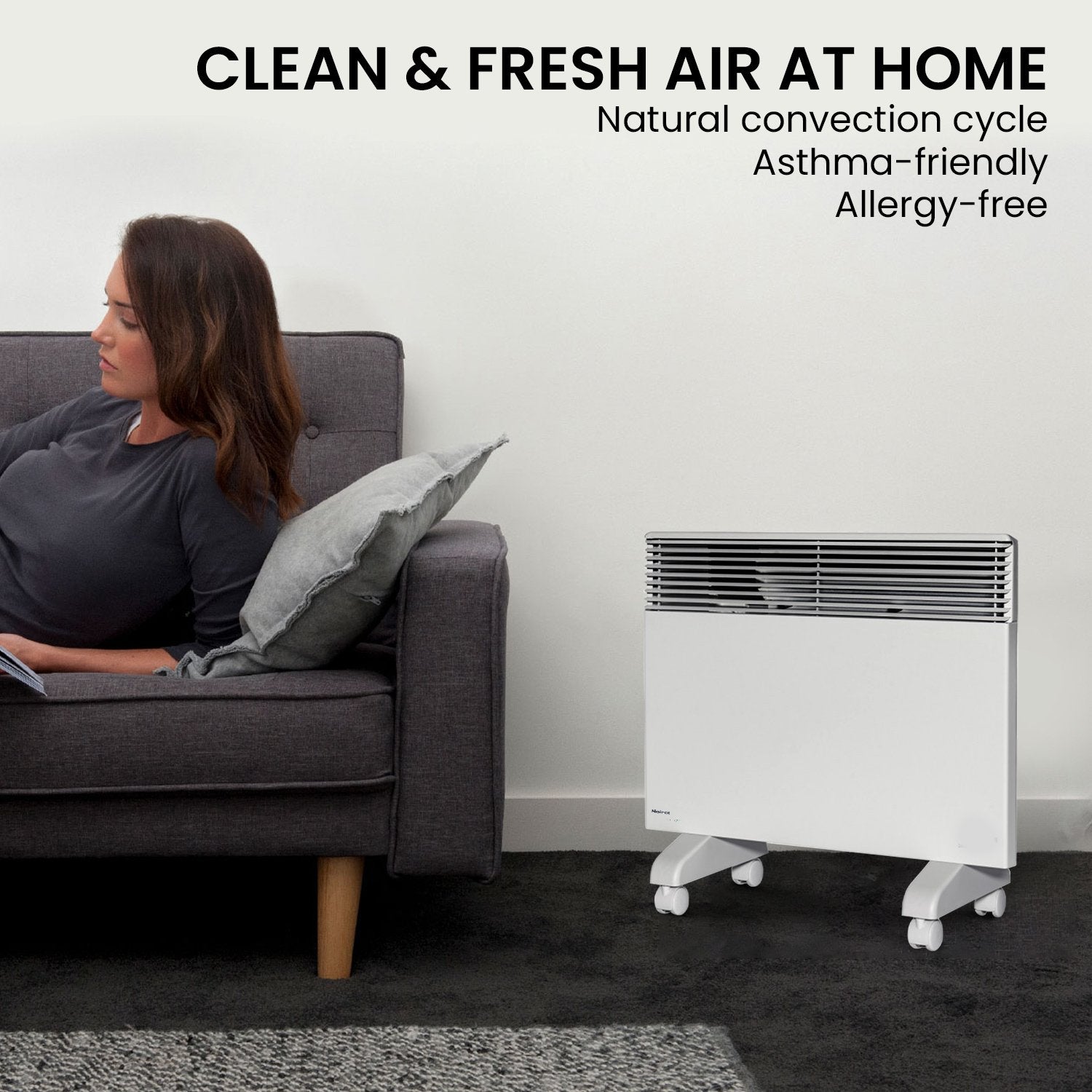 The Spot Plus 1500W Panel Heater uses natural convection to heat your home, creating a clean, silent and allergy-free cycle. It doesn't kick up dust or allergens, so you can breathe easy in your favourite spaces.