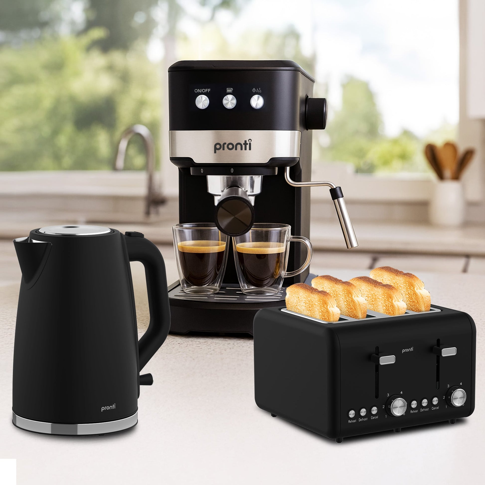 Pronti Breakfast Set with 1.25L Coffee Machine, Silver Noir Toaster & Kettle