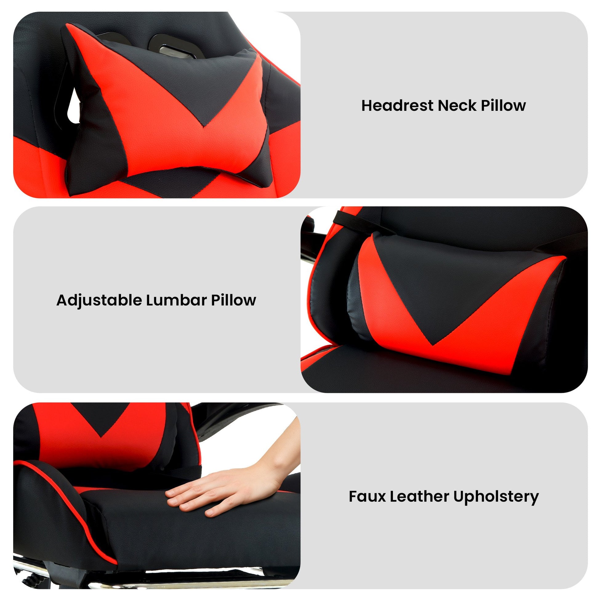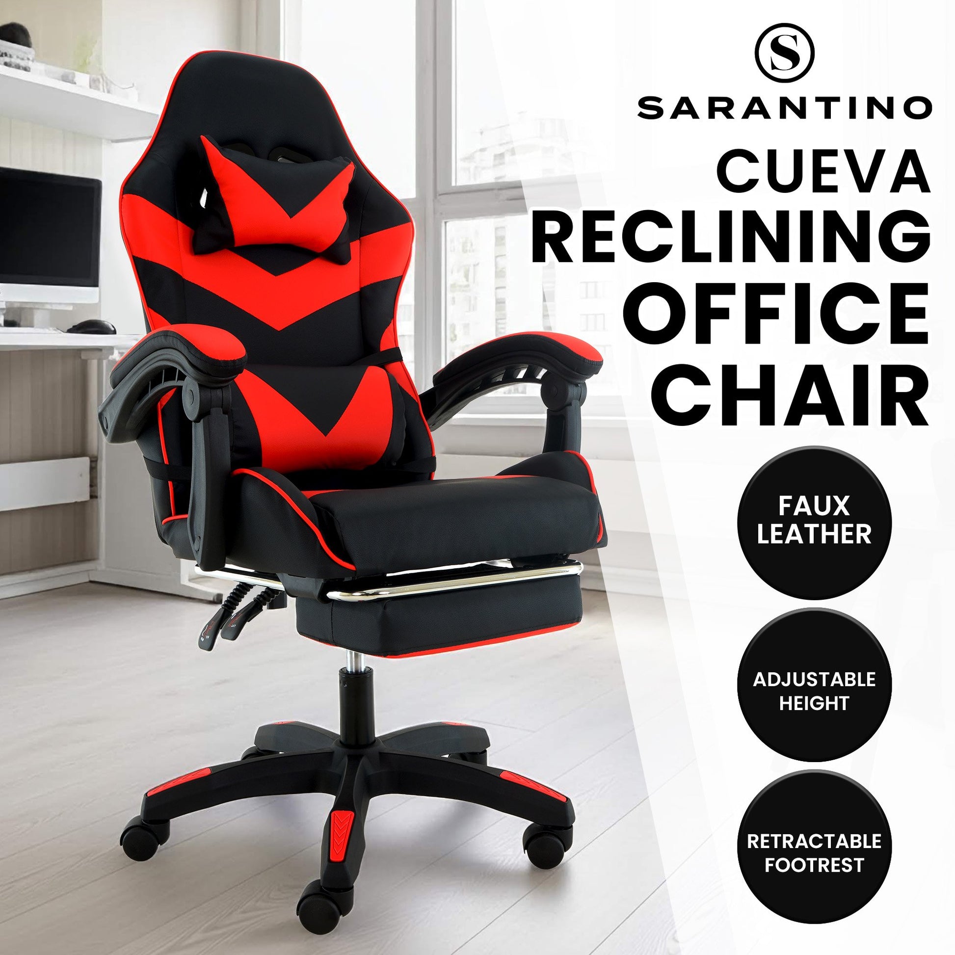 Sarantino Cueva Reclining High Back Office Gaming Chair with Retractable Footrest Office Computer Seating in Black/Red